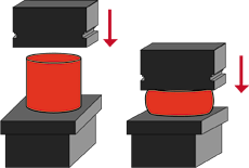 Starting stock cut to size by weight is first rounded, then upset to achieve structural integrity and directional grain flow. |